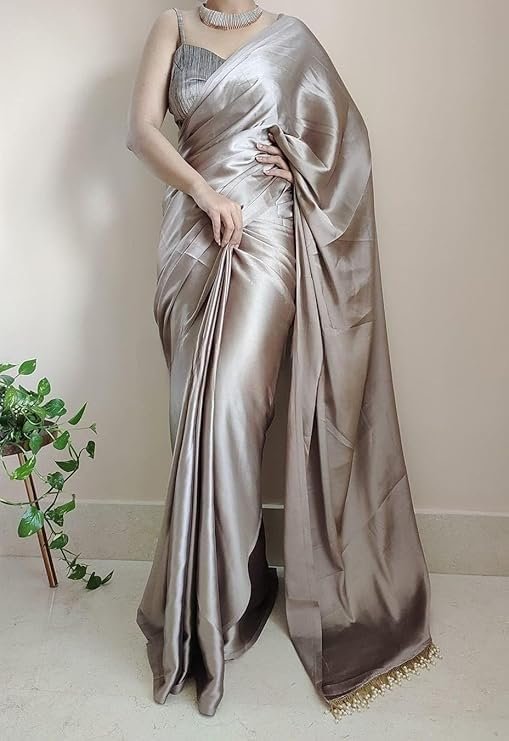 - Luxurious Satin Finish: Crafted from premium satin silk fabric, this saree boasts a smooth, glossy texture that drapes beautifully for an effortlessly graceful look.