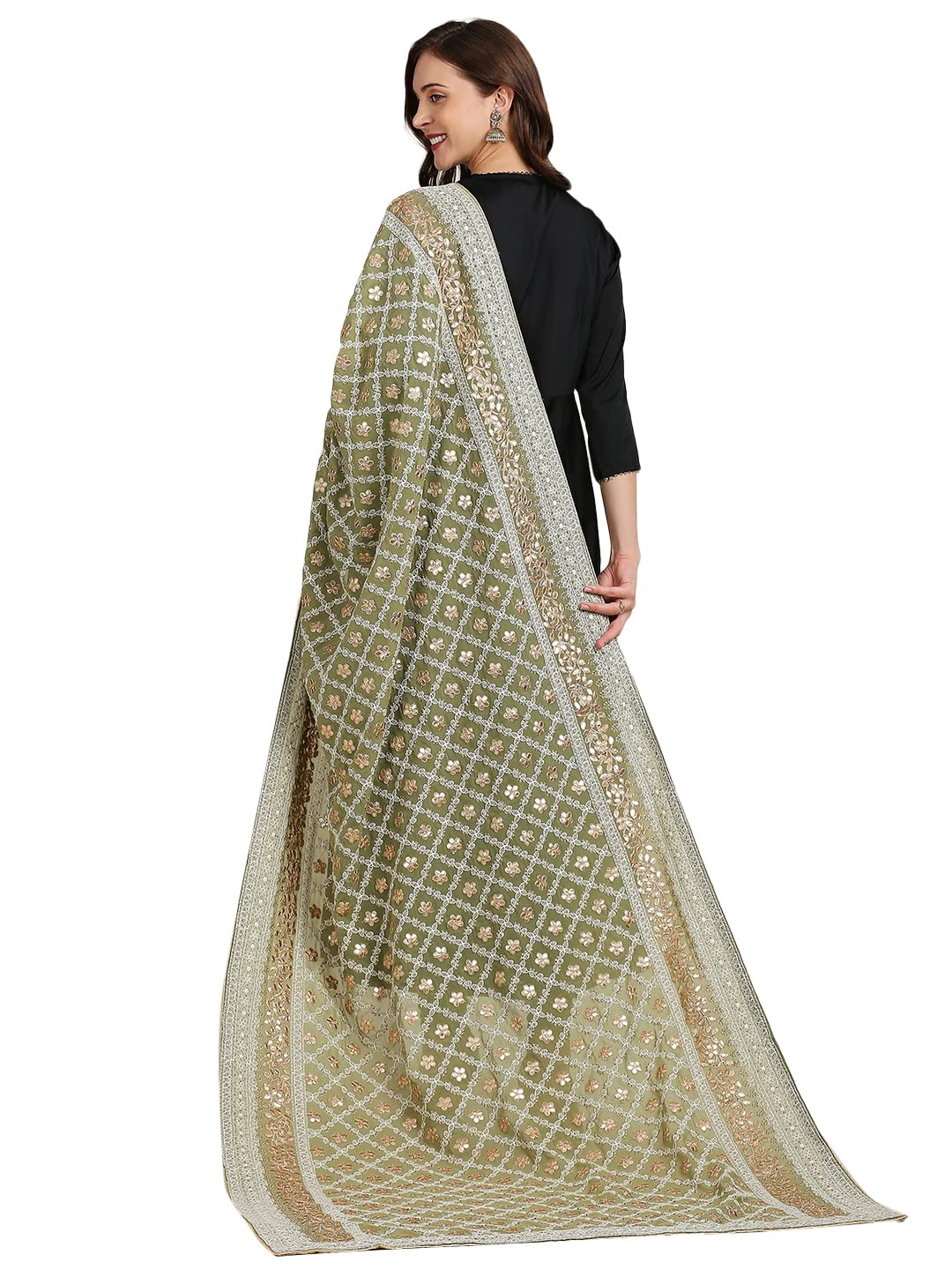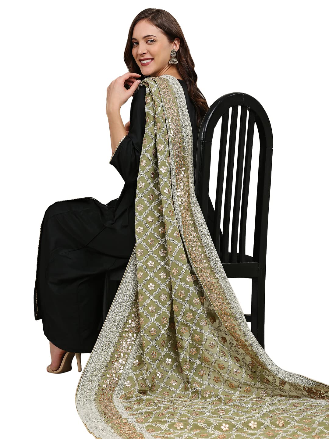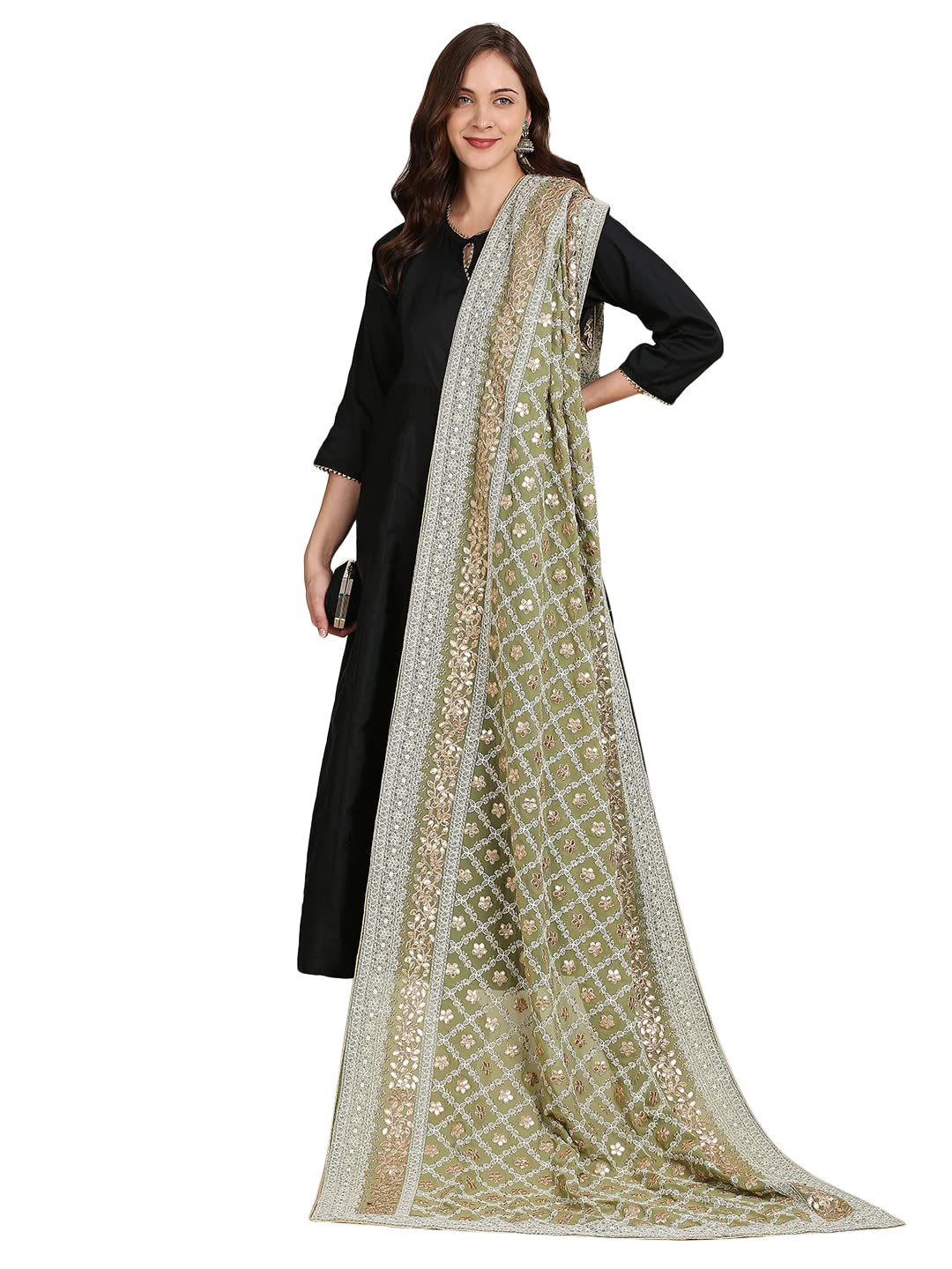 DUPATTA BAZAAR Women’s Olive Green Georgette Lucknowi Work dupatta with Gotta Patti Work.