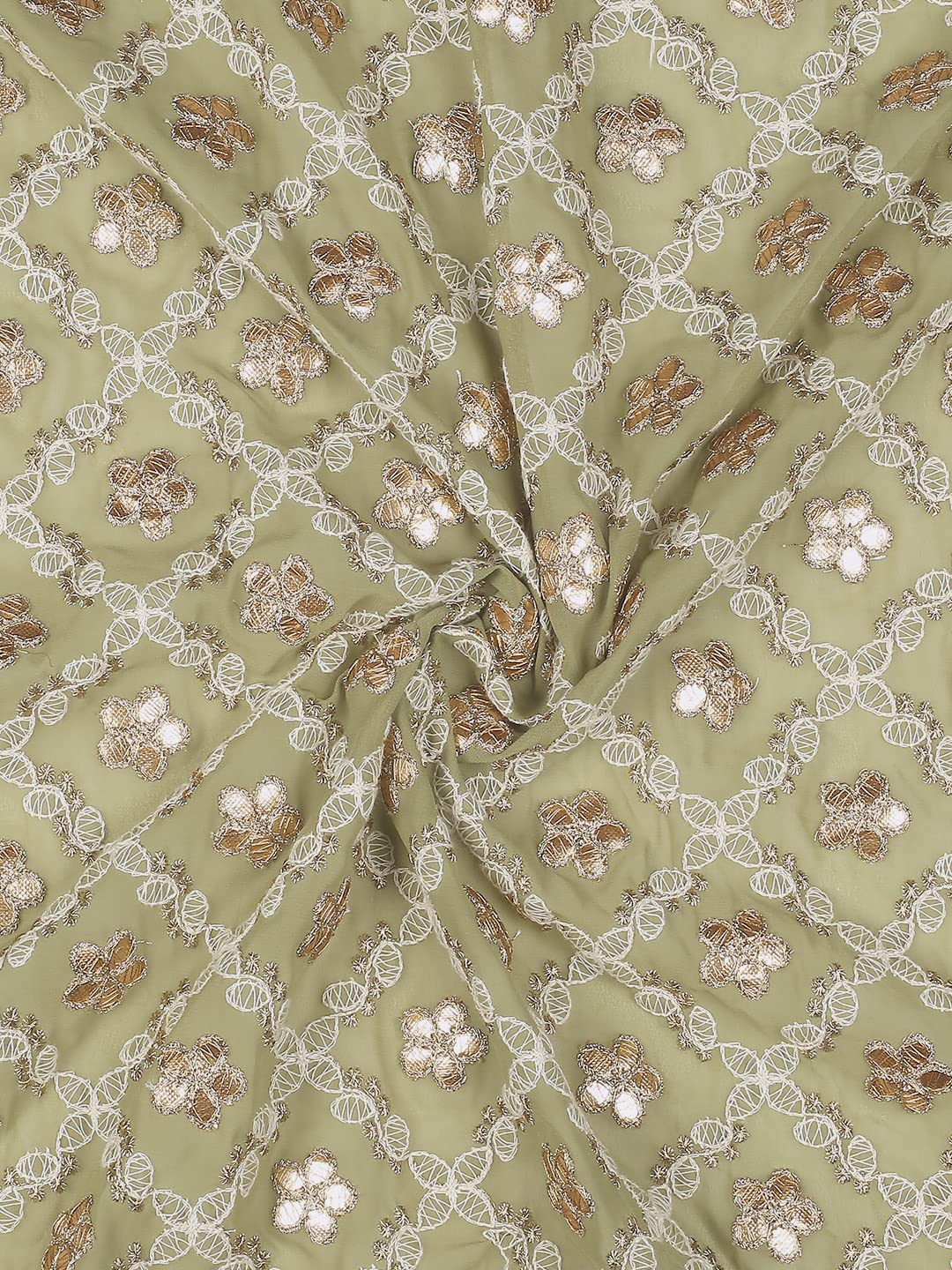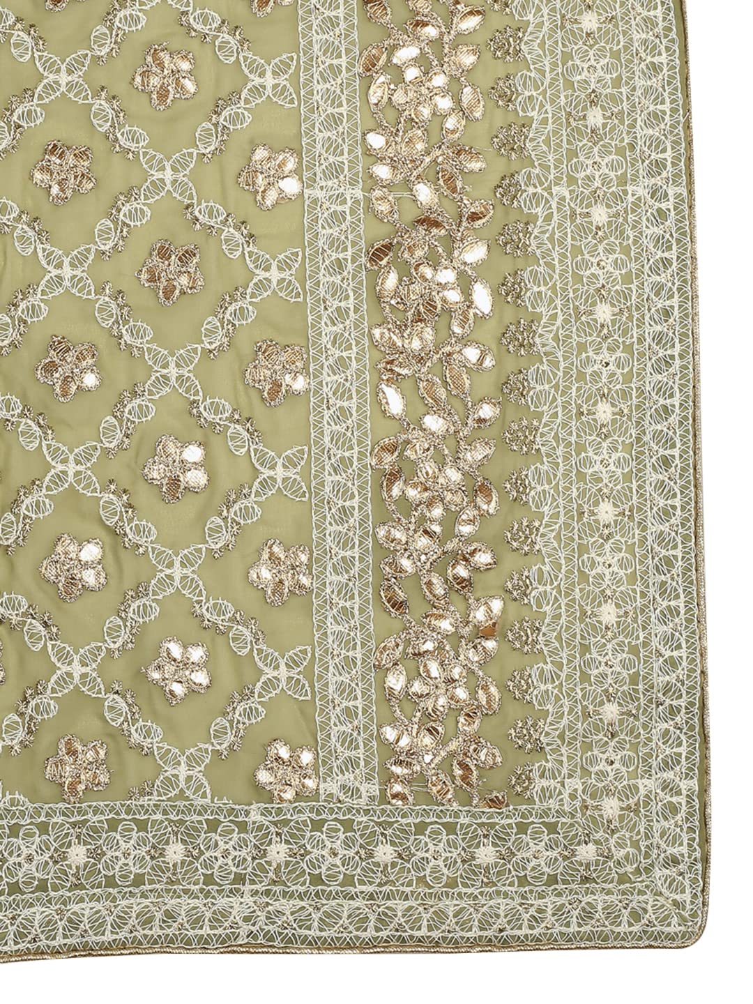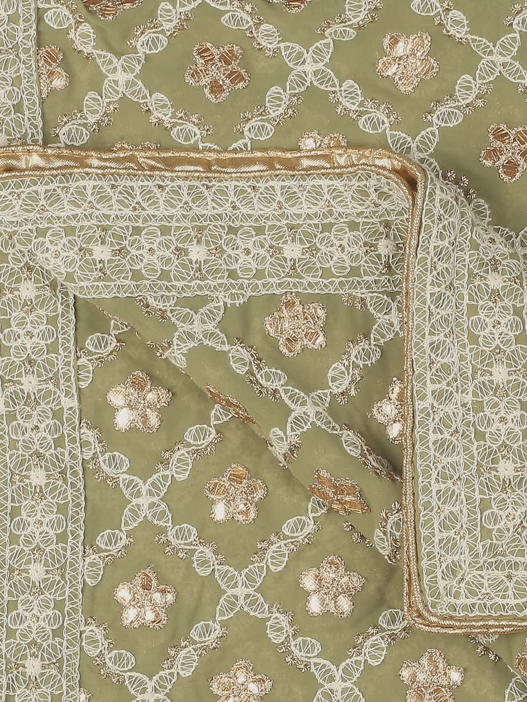 DUPATTA BAZAAR Women’s Olive Green Georgette Lucknowi Work dupatta with Gotta Patti Work.