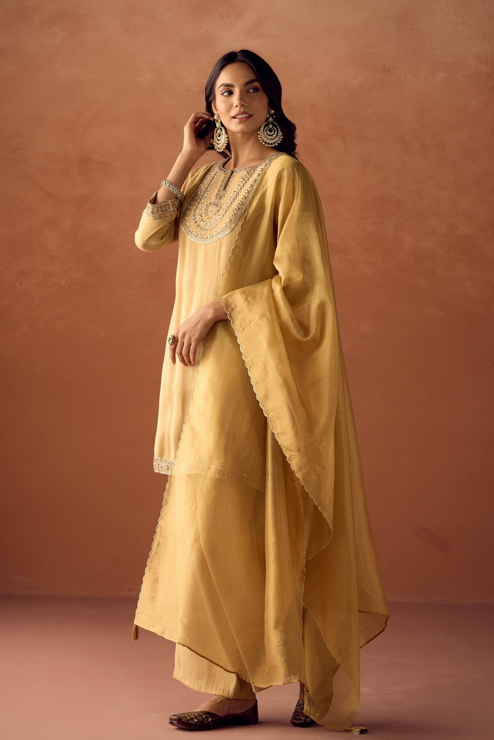 • Kurta Material : Tissue Blend || Palazzo Material : Tissue Blend || Dupatta Material : Zari Organza