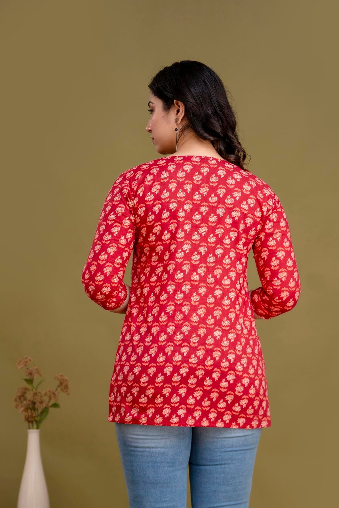 Flora India FP Presenting Women’s Beautiful Cotton Printed and stylish and trendy fashion essential for the modern women. This eye- catching top available on Amazon, combines comfort, elegance and vibrant design to create a must-have addition to your wardrobe Order now and experience the perfect blend to comfort, style and affordability in one fabulous package. This attractive stitched Top made with fine quality Cotton Material and with beautiful Print which can be worn for functions, festivals, parties and even office also. Pair this dress with matching leggings, jeans and palazzo of your choice to look stylish.