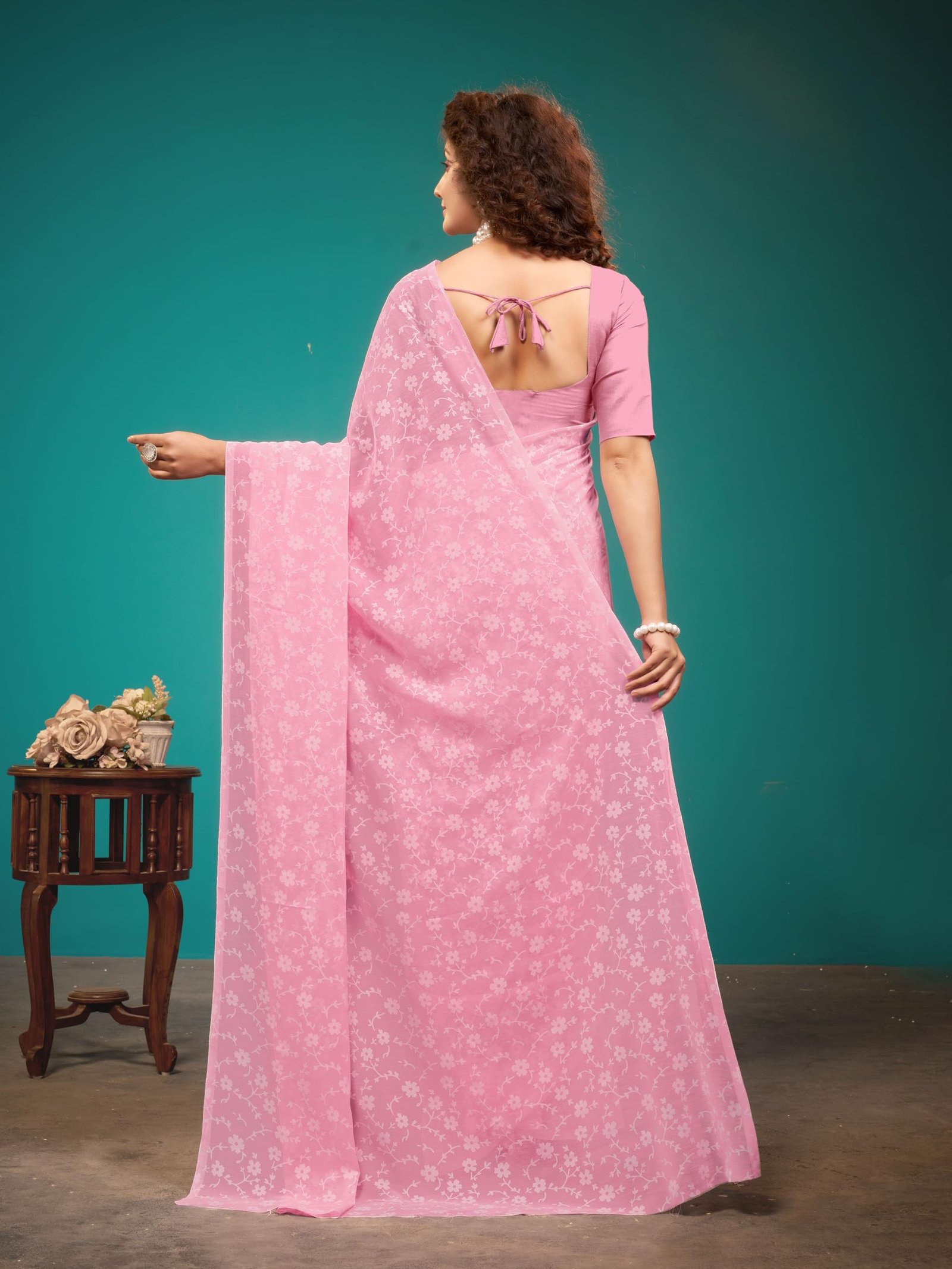 • Beautiful Floral Print Saree. Light comfortable to wear, perfect for Casual, Work and Daily wear.