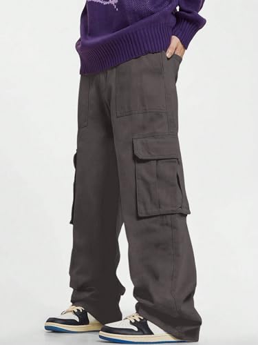 GRECIILOOKS Regular Fit Cotton Trousers Baggy Pants Cargos for Men (GL-TP-1076_Grey_M)
