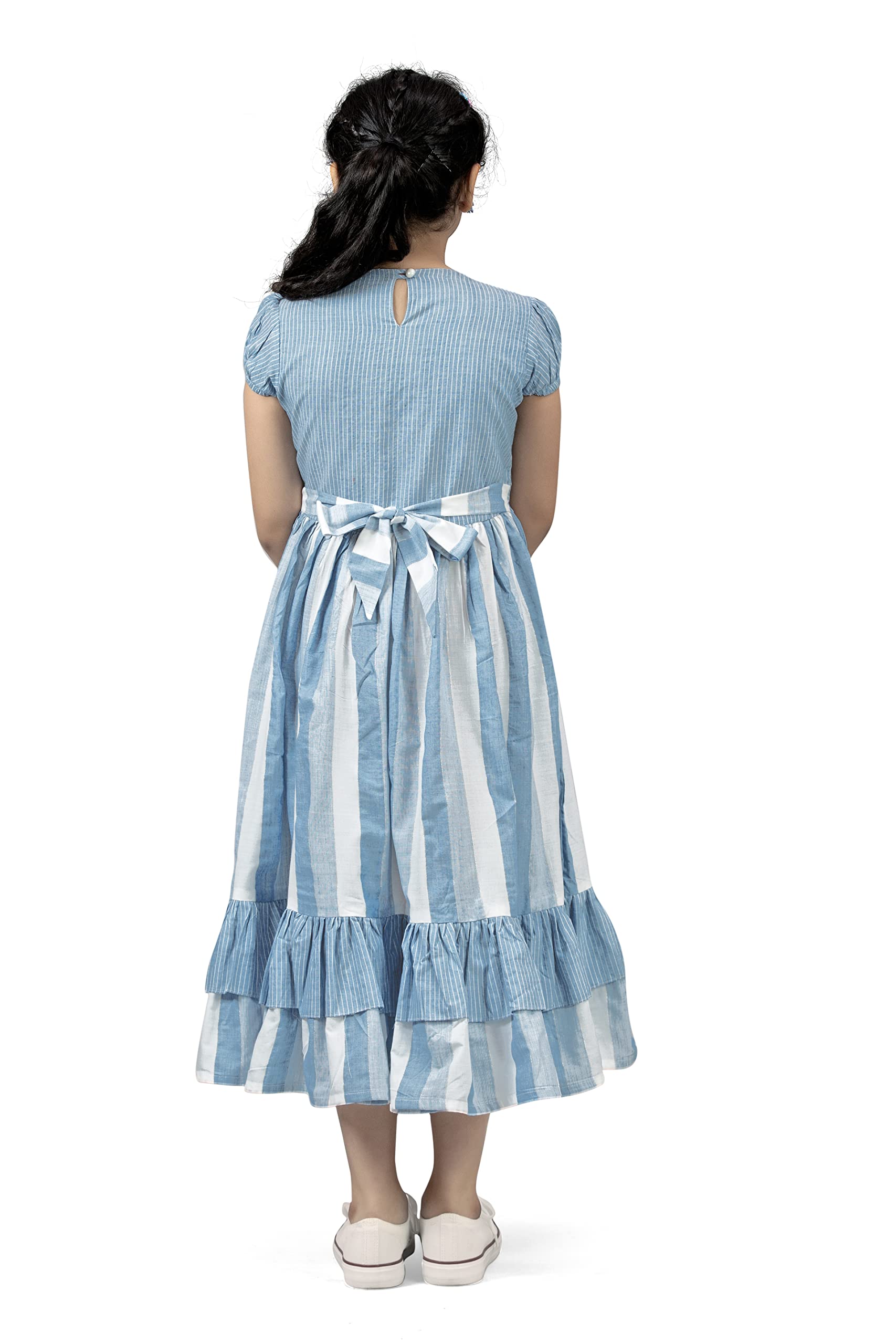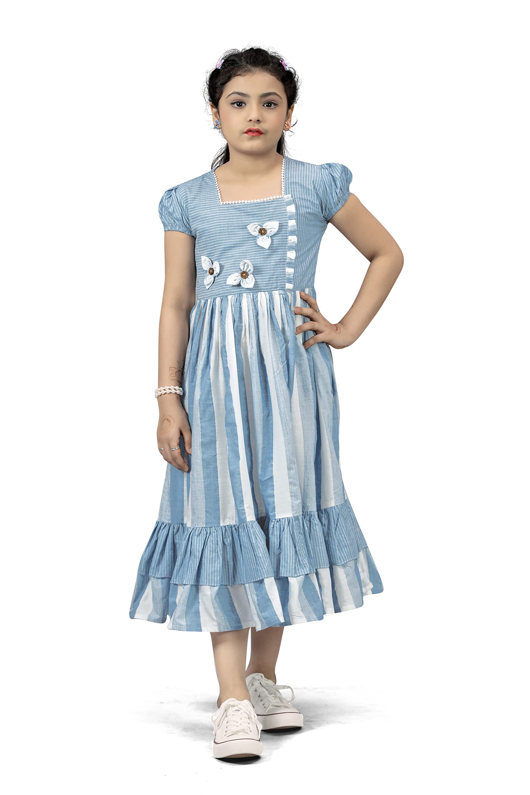 Spruce up your girl’s wardrobe with linen or cotton stripe dresses from Jwalin available on Amazon. Pair it with the high heels and right accessories to dress it up or down depending on the occasion. Specially designed for all occasions like Birthday Party, dances, evening events. Preteen girls outgrow their look with our adorable double breasted bodice dress in this new season. This dress is crafted in linen soft cotton fabric with thin and thick stripe print, dress’s front side at yoke designed with two rows of button. This simple but admiring dress has long flared skirt. This neoclassical style dress featured a shawl caller neckline style with Gpo lace at edge of coller, short sleeves, sewing pattern, an unfitted bodice that usually gathered into an inset waistband, and this full skirt that varied in length from slightly-below-knee length for small girls to calf length for the young teen girls. Pink color give feel of happiness in your girl mood throughout the day.