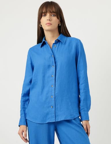 - Elevate your wardrobe with this chic women’s shirt, crafted from pure linen. Featuring a plain pattern, full sleeves, and a sophisticated spread collar, this regular-fit shirt is designed for timeless elegance. The button hemline adds a refined touch, making it perfect for any occasion.
