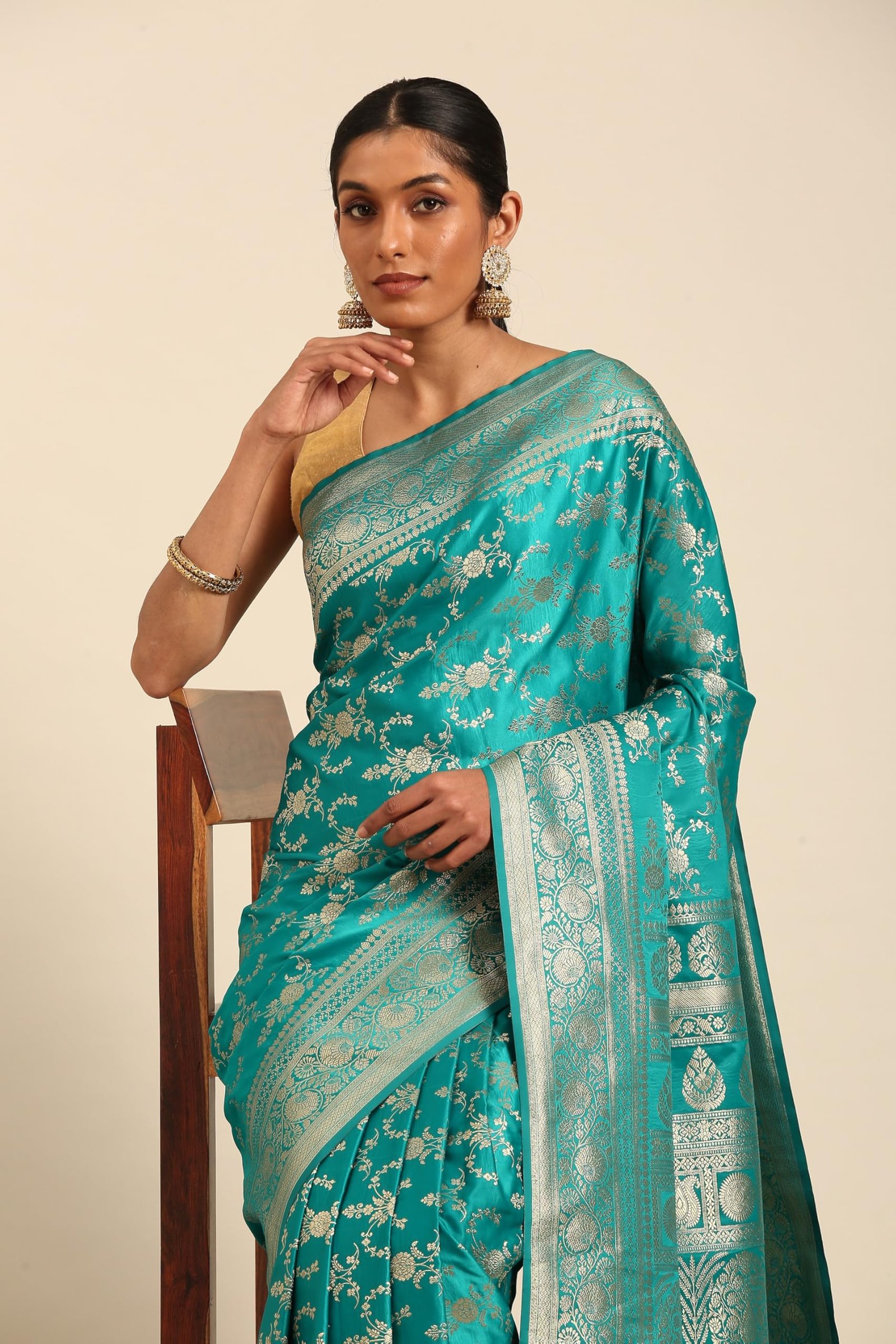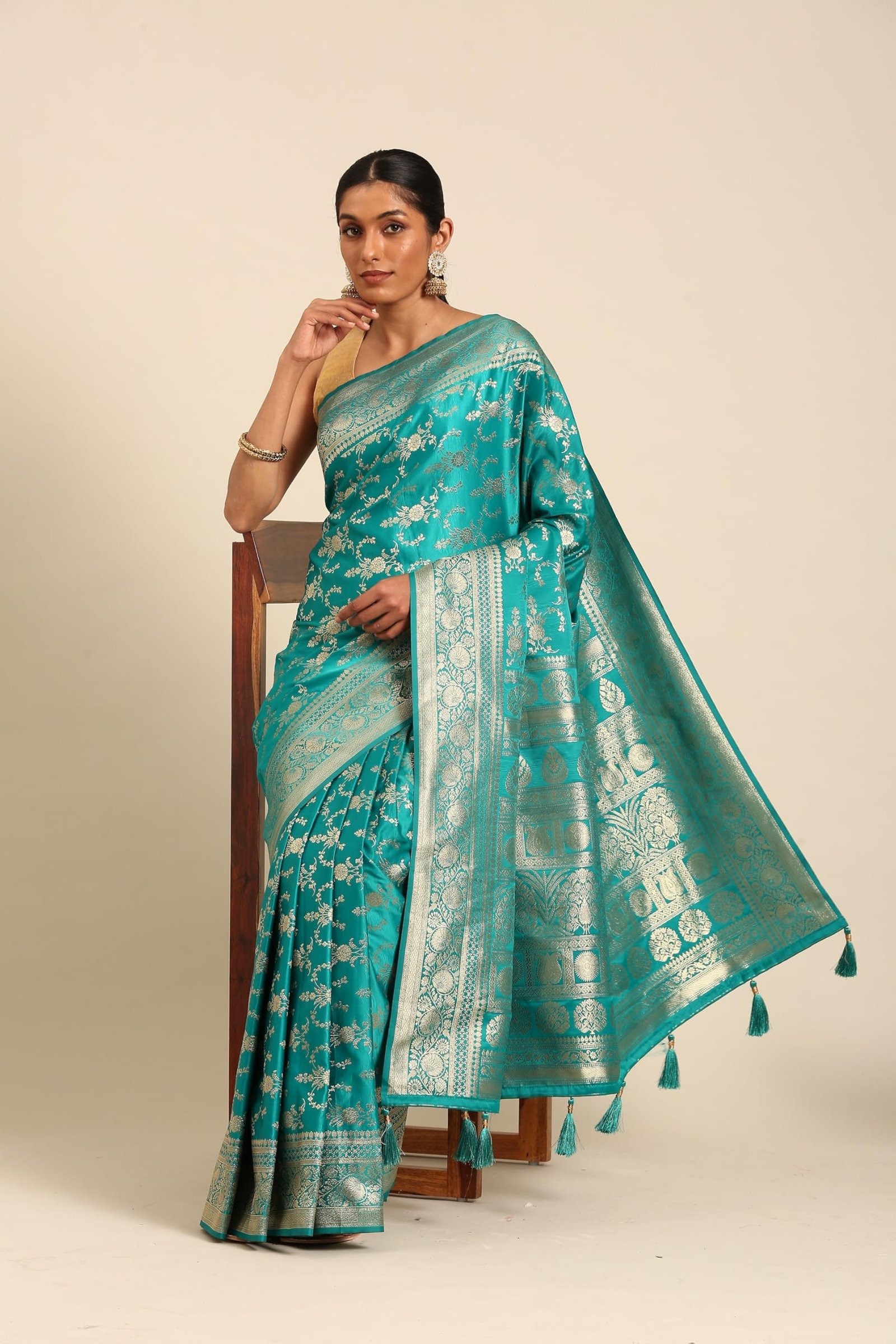 • Design: Drape yourself in this gorgeous Rama Green saree for a classic and elegant look. Crafted from superior quality silk, this saree ensures a comfortable fit and soft feel. Its rich hue and sophisticated charm make it a perfect pick for any grand occasion or family celebration. The saree comes with an unstitched blouse fabric that can be tailored to suit your style and preference. Elevate your festive look with this stunning saree.
