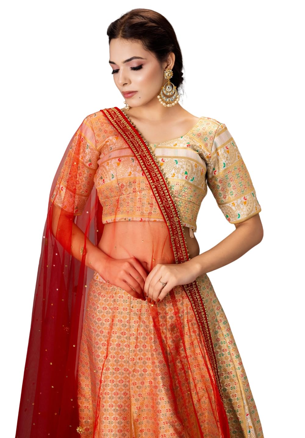 - Bridal dupatta for wedding Add a touch of elegance to your wedding outfit with this Red, Pink dupatta for lehenga or saree