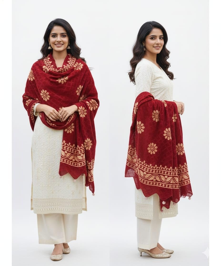 - Rich Ruby Red handcrafted shawl/dupatta with traditional ethnic appeal