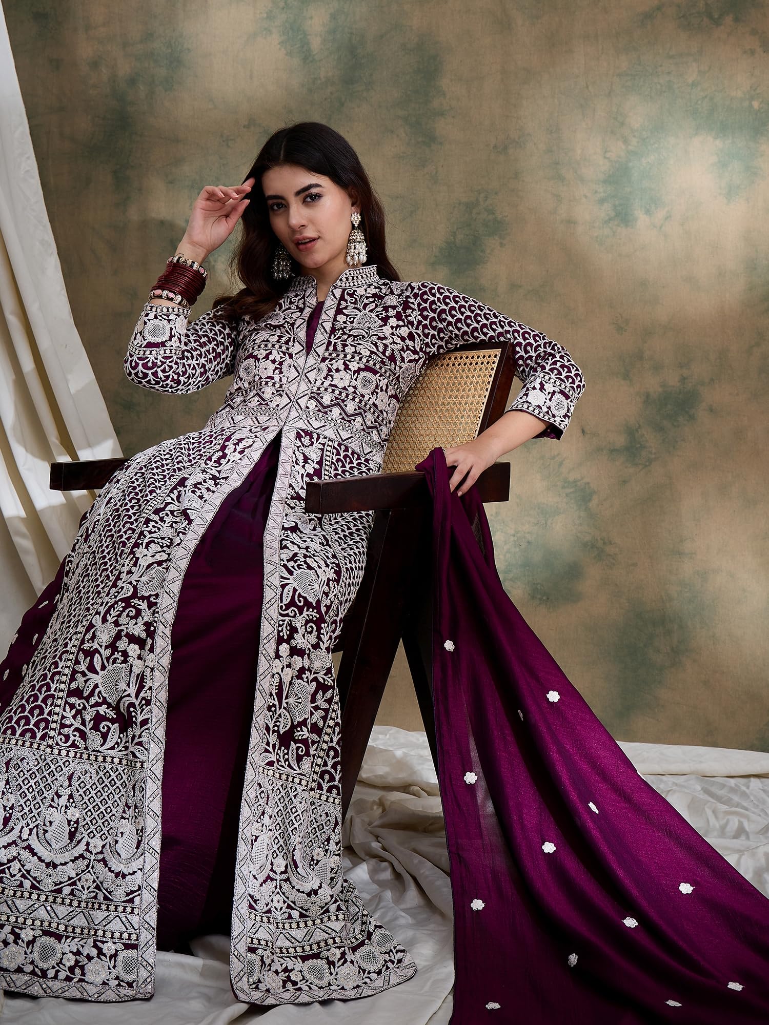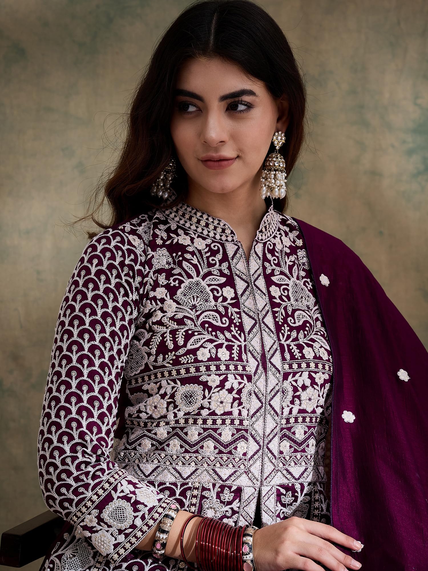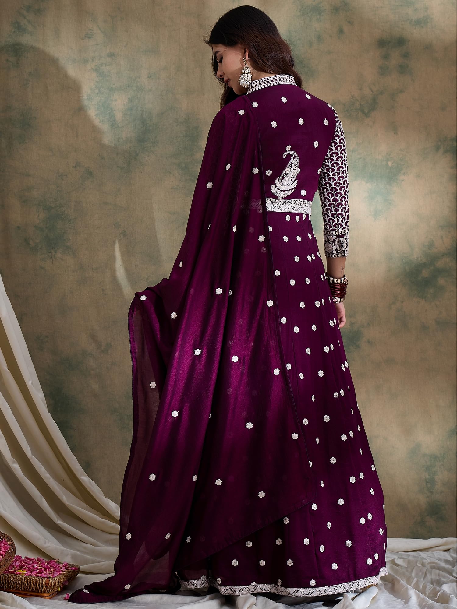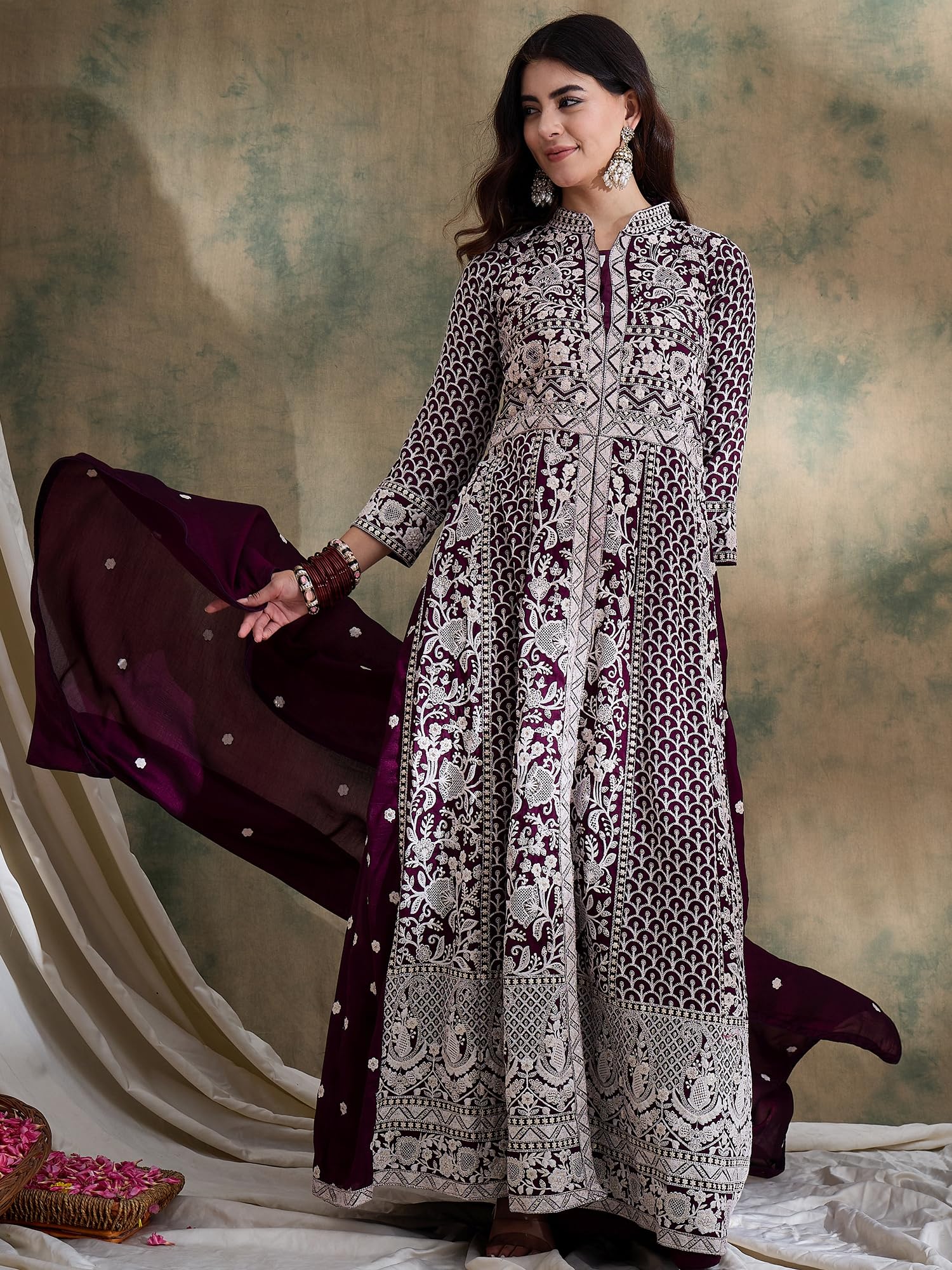 Saahmriga Women’s Faux Georgette Anarkali Gown Floor Length Wedding Dress (STY-1165-Purple-XXL