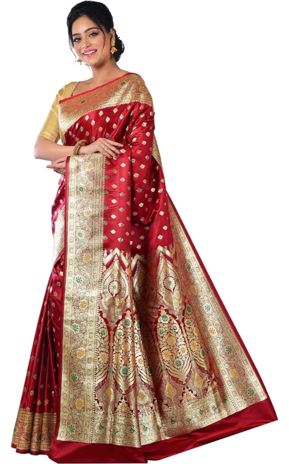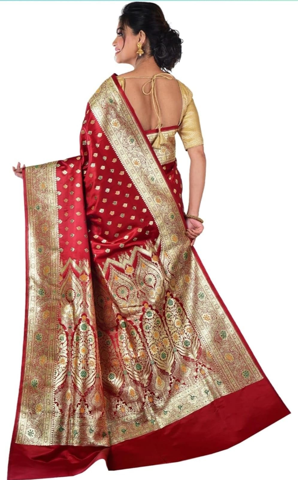 Trendy Banarasi Saree with Jacquard Work,Elegant Design,Banarasi Pure Silk Saree for Women with bp (Red)-Wedding Special