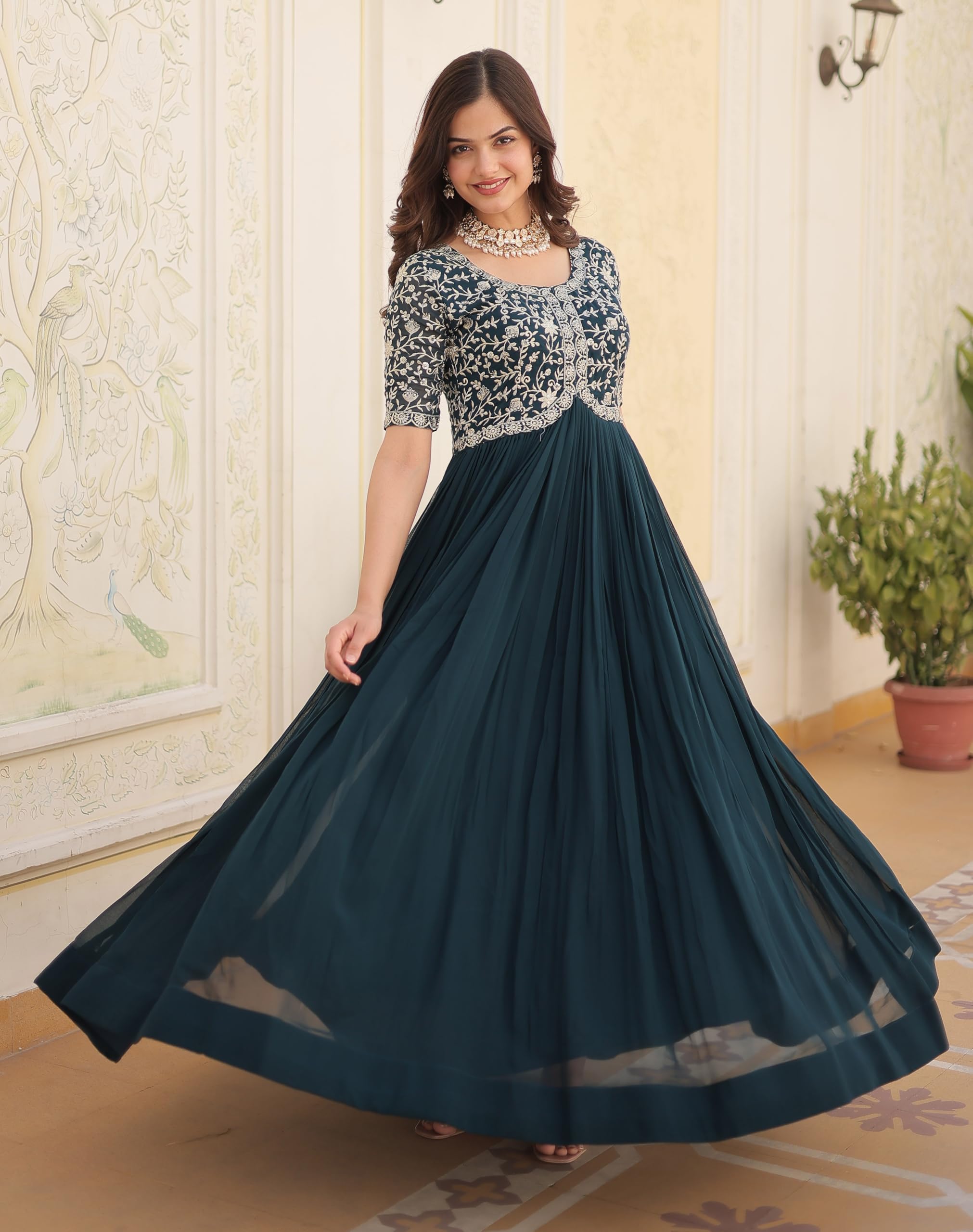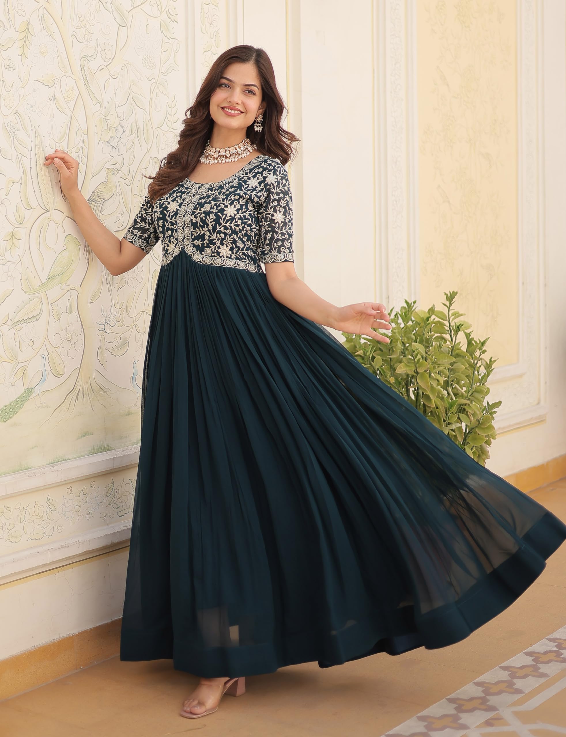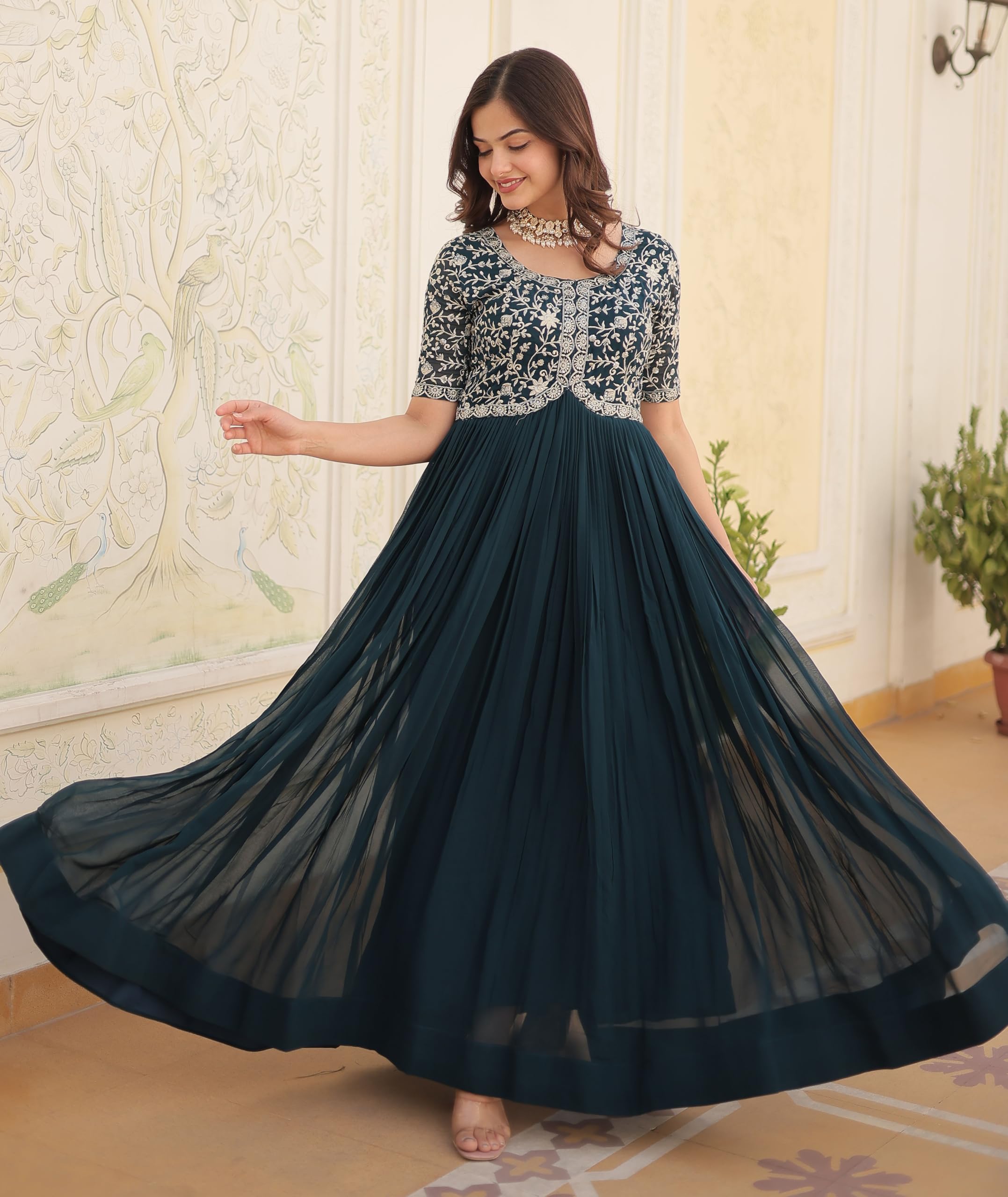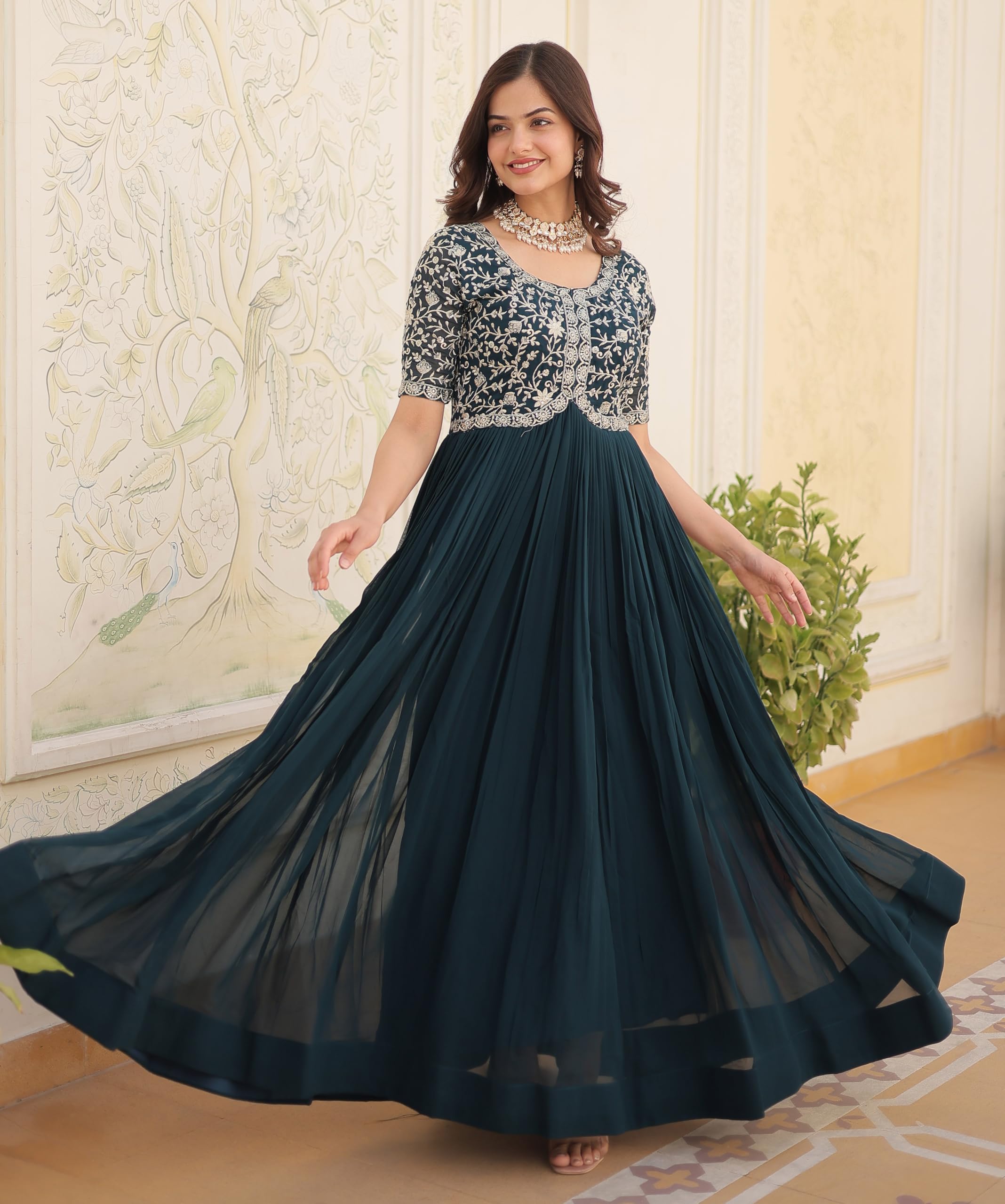 - FABRIC & WORK:- Faux Blooming with Embroidery Zari Sequins-work