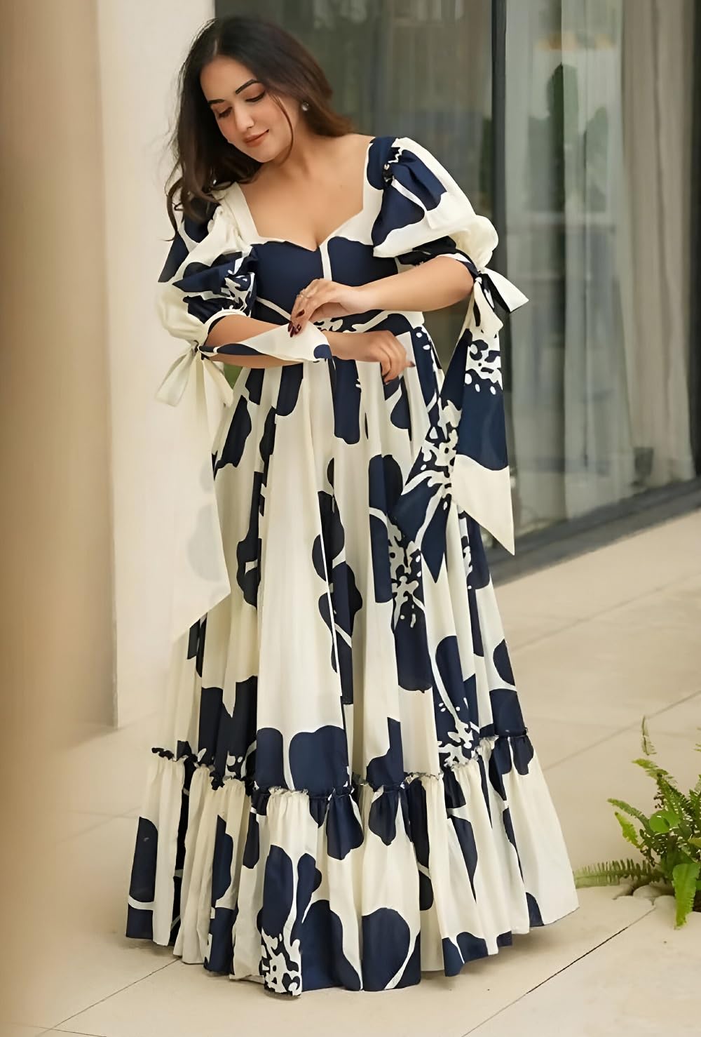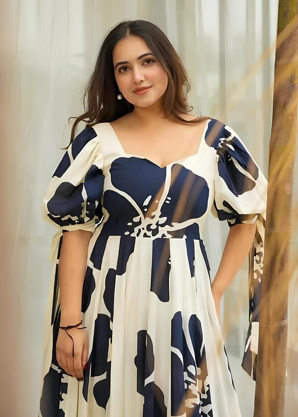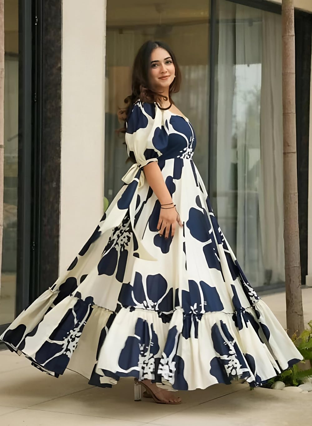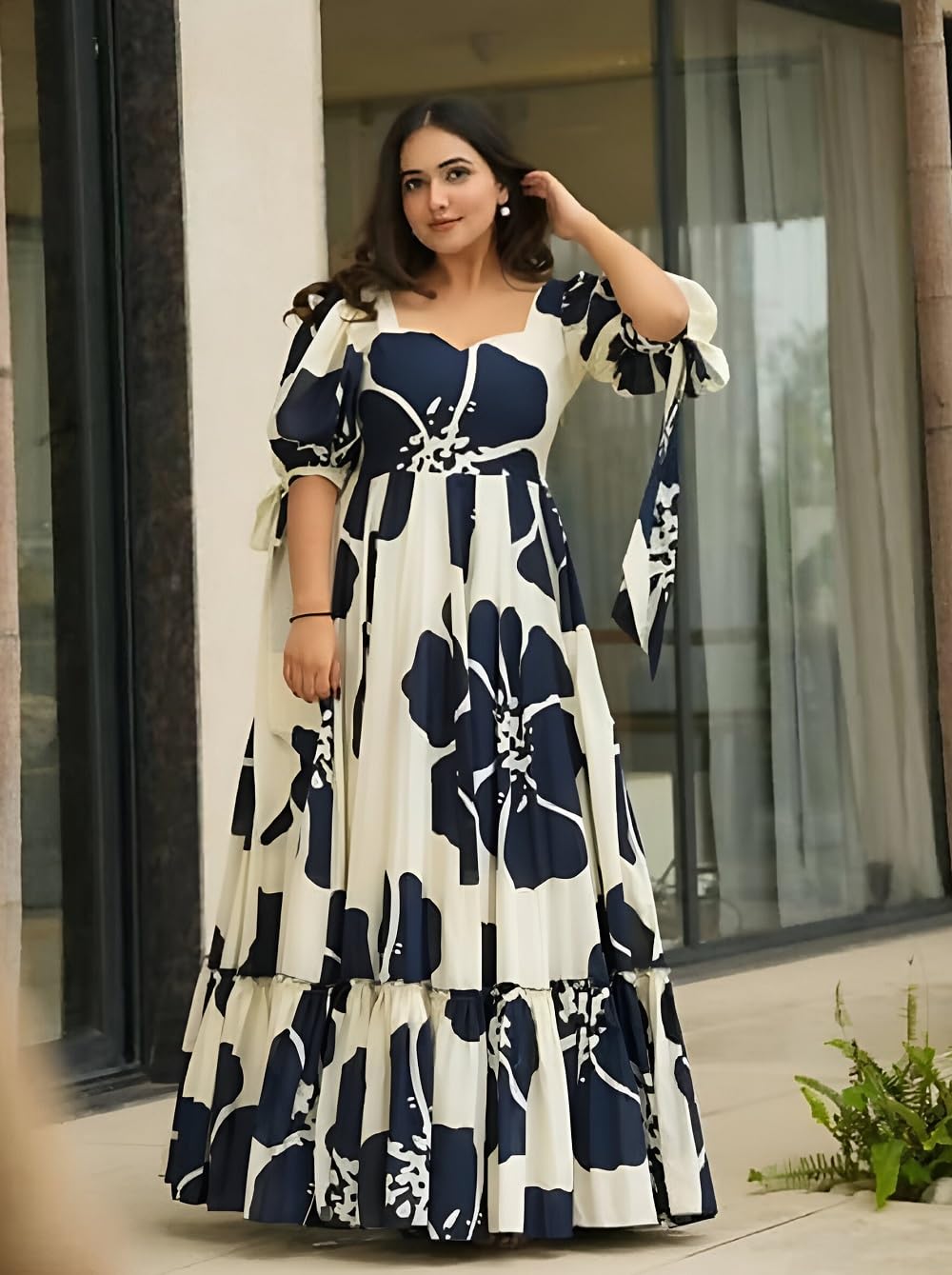 Women’s Long Gown the front and a chic floral print. Designed for modern women who love a traditional touch, this gown is ideal for weddings, sangeet nights, festive events, and family parties. The breathable, high-quality fabric offers both comfort and style, while the flared hem gives you a graceful silhouette. Add a pair of jhumkas and heels to complete your ethnic diva look!